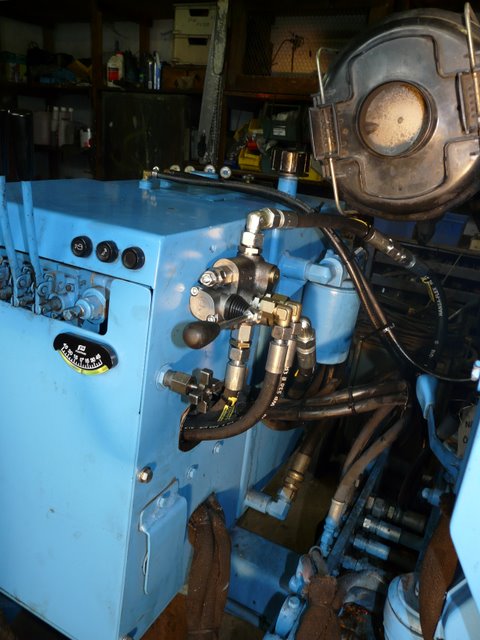 Der größte Unterschied ist das Steuerventil. Dieses habe ich vorne angebracht. Das Ventil ist mit einer Druckweiterleitungspatrone ausgestattet. Druck geht ins "kleine" Steuergerät