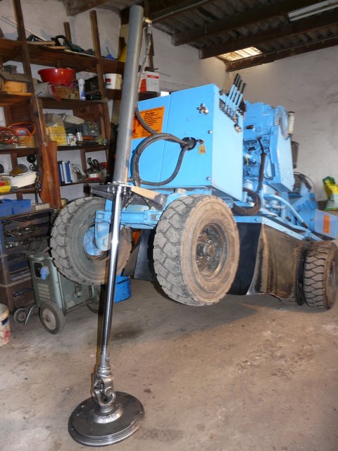 Naja den Stempel hinten gedrückt, so daß die hinteren Räder in der Luft waren und den Schneidekopf so gesenkt das die vorderen Räder in der Luft waren. War gerade fertig mit fräsen, Fräsrad war aus und ich .... ach ich weiß auch net wie ich das wieder fertig gebracht habe :?